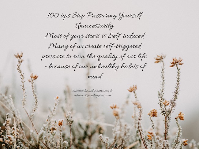 100 tips on How to stop putting pressure on yourself and sabotaging your own life yourself by cutting down and minimizing your self-imposed stress - GIVEN RANDOMLY