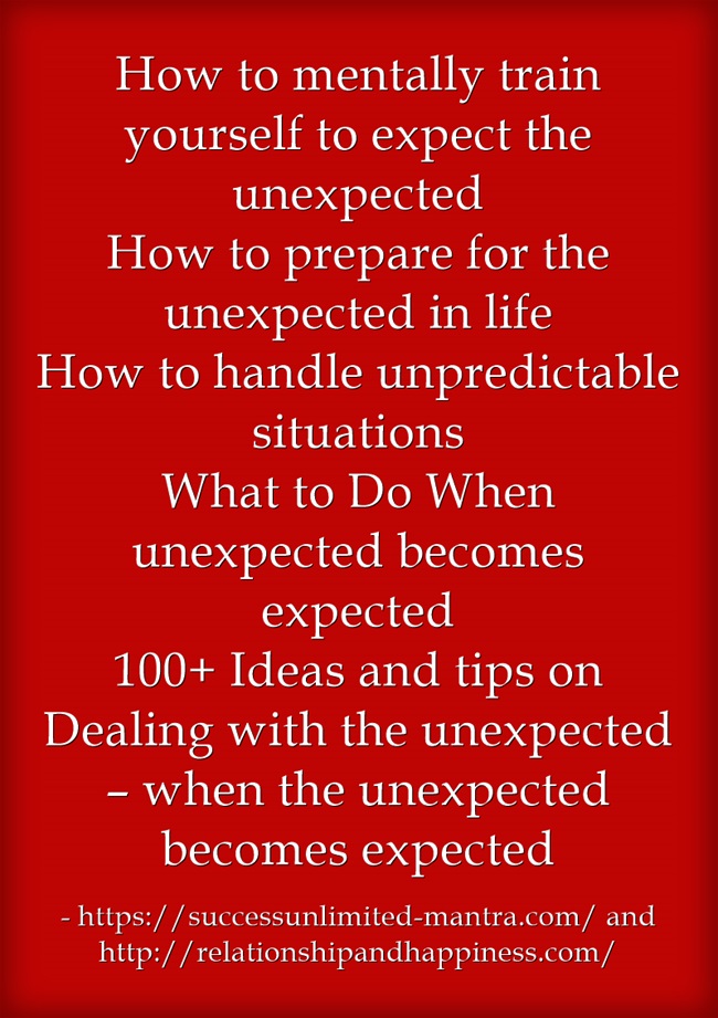 #howtoexpecttheunexpected, #expecttheunexpected, #howtobecomfortablewithunexpected, #anticipatingandpreparaingforunexpected, #trainyourmindforunexpected, #uncertainitiesaambiguitiesanddisruptionsarepartoflife, #howtopreparefortheunexpectedinlife, #takethefirststepintherealmofunknown, #howtohandleunpredictablesituations, #whattodowhenunexpectedbecomesreal, #ideasonhowtodealwithunexpected